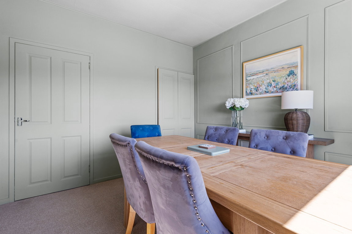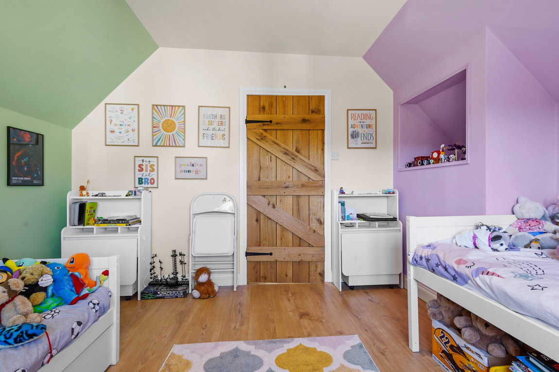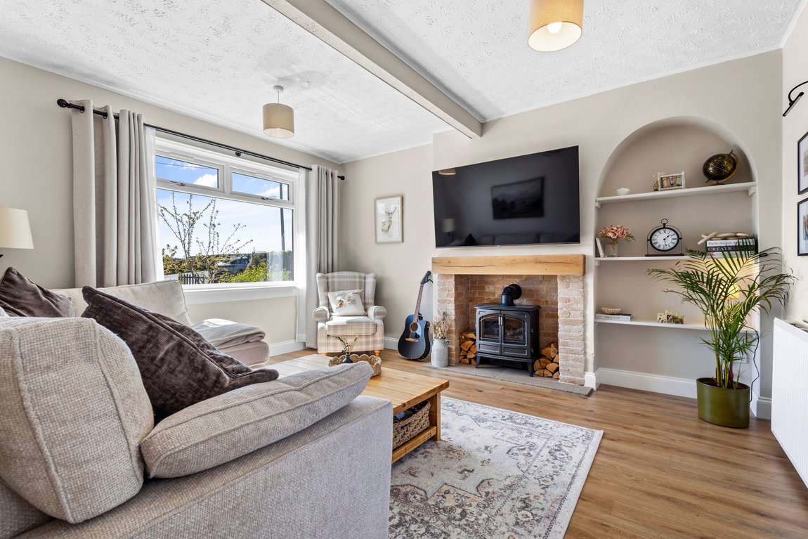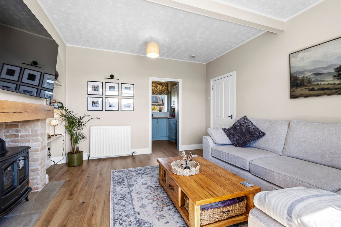 The ground floor centres around a warm and inviting front‑facing lounge, where open countryside views create an ever‑changing backdrop throughout the seasons - an ideal space to unwind and relax. A separate dining room, equally suited as a third bedroom or home office, provides excellent flexibility for modern living. The kitchen to the rear offers access directly onto the garden, creating a seamless connection between indoor and outdoor living, while the family bathroom is conveniently positioned off the hall.